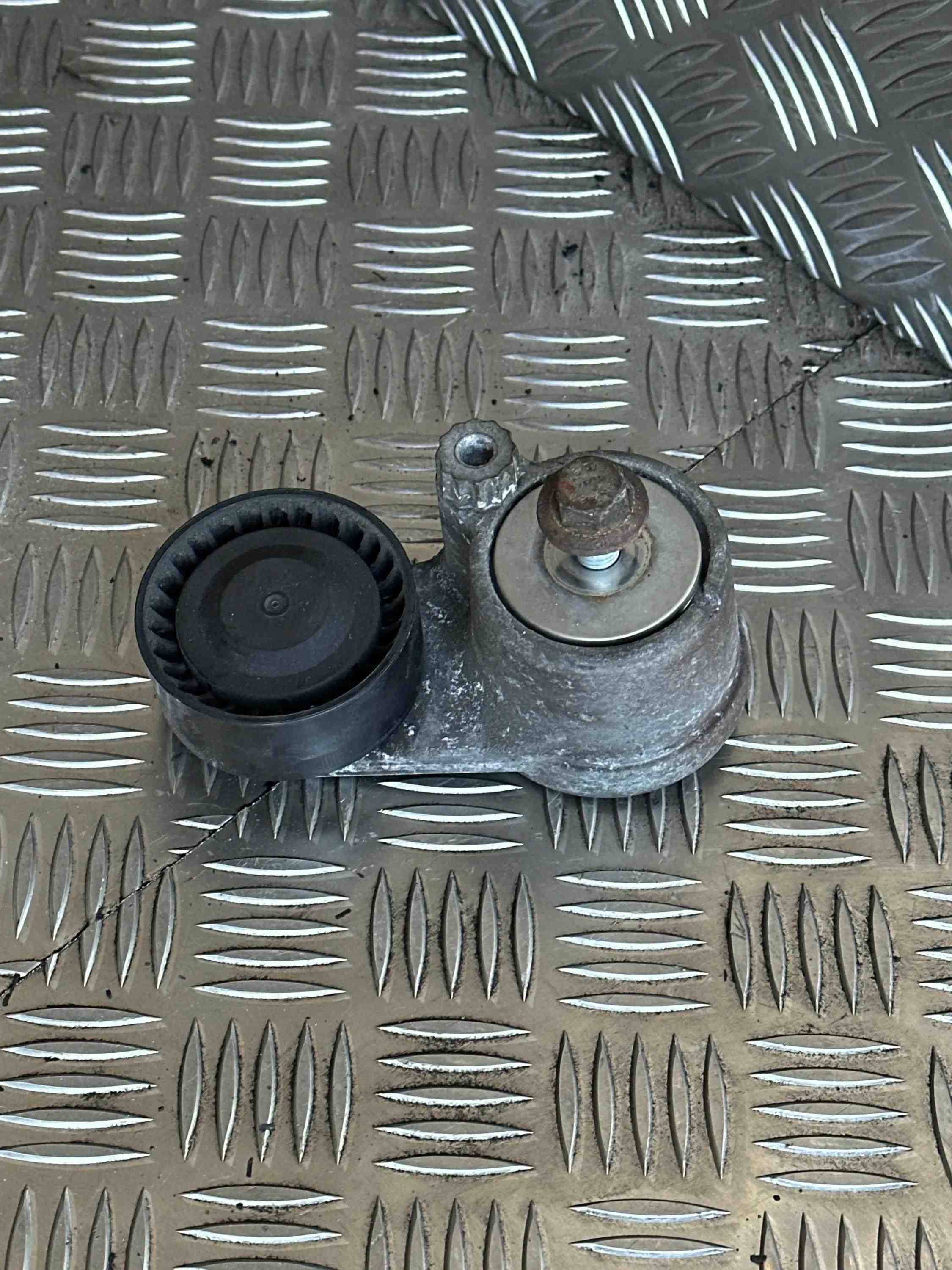 55570067 – Įtempiklio skriemulys, V formos rumbuotas diržas, Kreipiantysis skriemulys, Įtempiklio svirtis