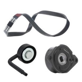 64557786076 – Įtempiklio skriemulys, V formos rumbuotas diržas, Kreipiantysis skriemulys, Įtempiklio svirtis